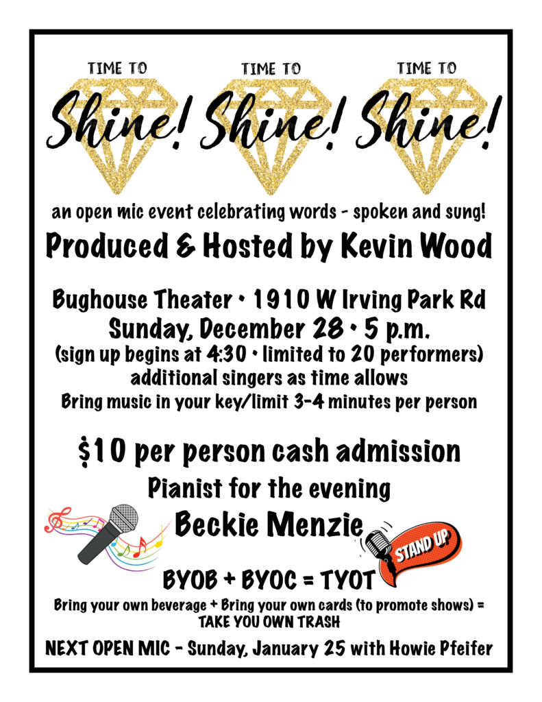 Join me the last Sunday of each month for an open mic where you are encouraged to take risks and test the boundaries of your talent and interpretation!!!!